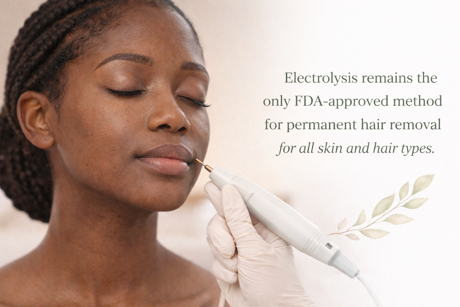 Electrolysis remains the only FDA-approved method for permanent hair removal for all skin and hair types.